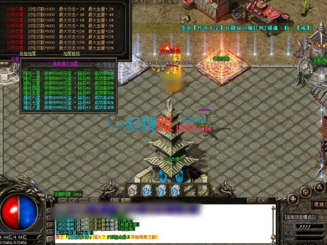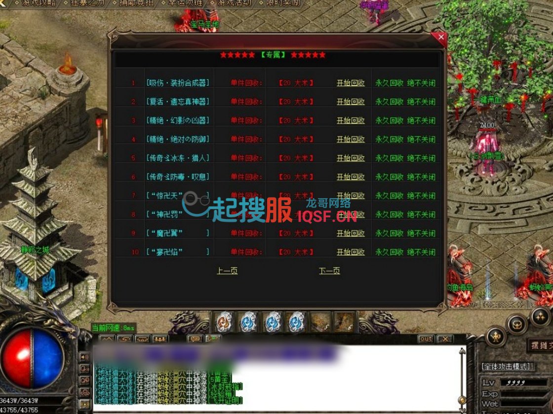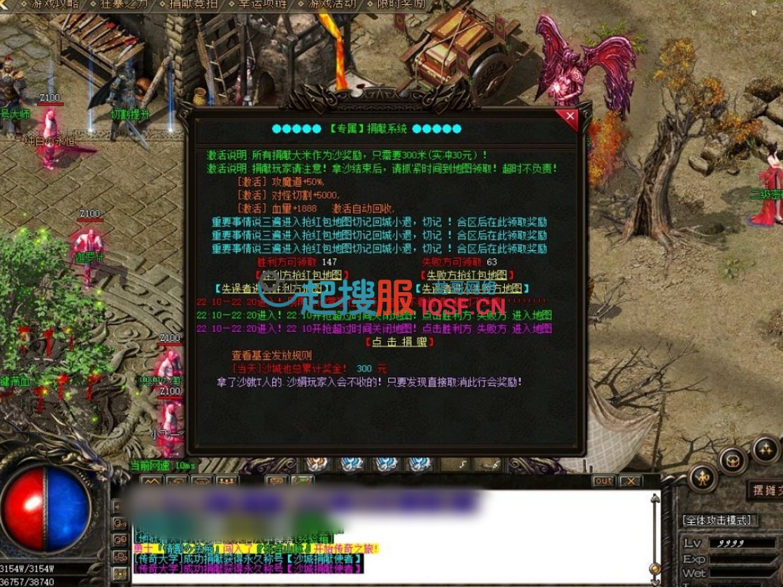 2.沙城捐献:对怪切割+5000攻击速度+50%血量提升1888攻魔道+50自动回收