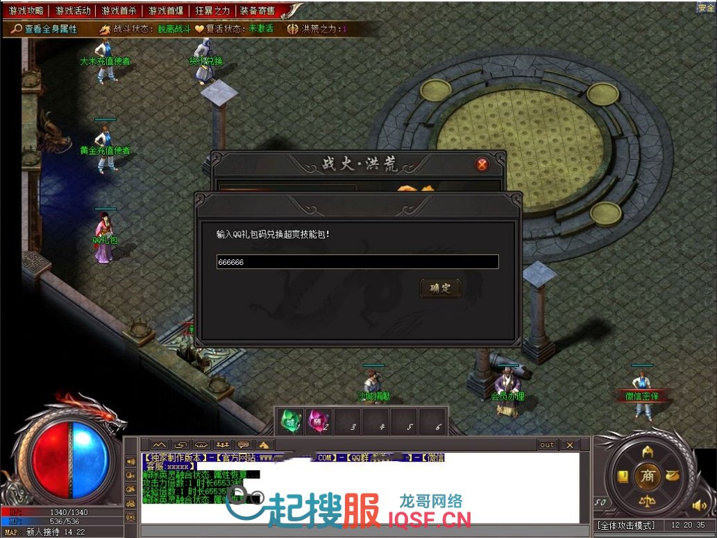 QQ礼包码:666666 推荐游戏分辨率:1152*864