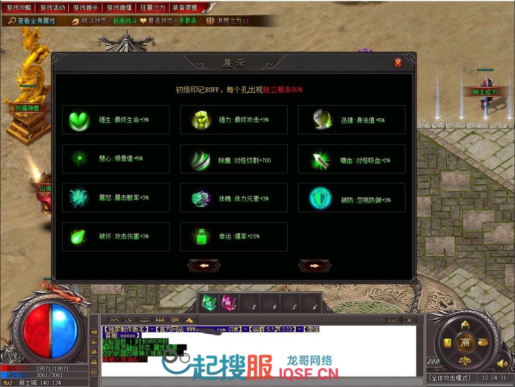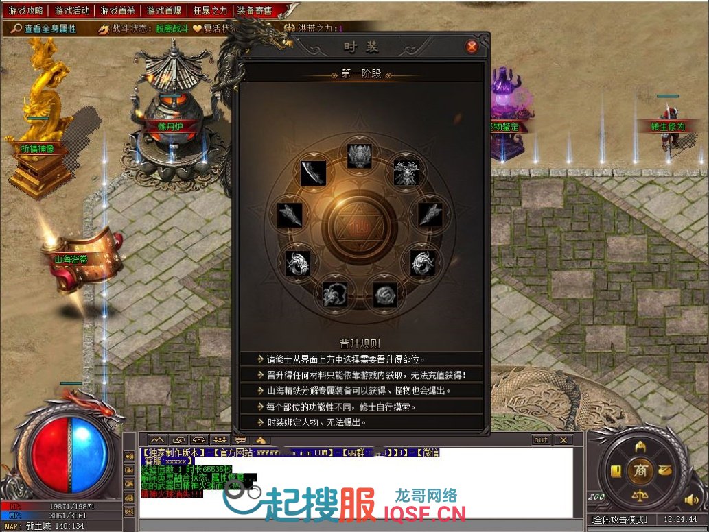 本服玩法可以概括成4条线,一是祈福圣物路线,二是英灵融合路线,三是时装,生肖路线,四是各类技能称号路线。