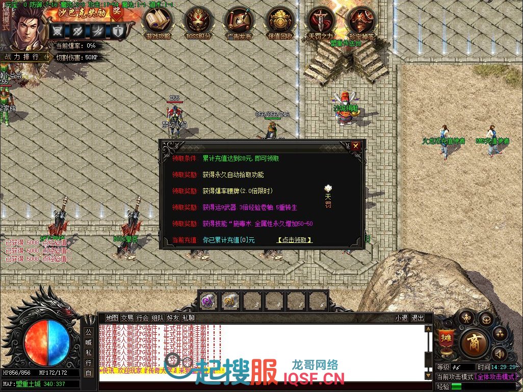 小资玩家先弄沙捐会员狂暴,进相应的地图打装备,元宝,火龙币
